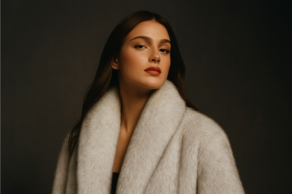 WinterChic Soft Pearl – High-Neck Ombré Faux-Fur Jas