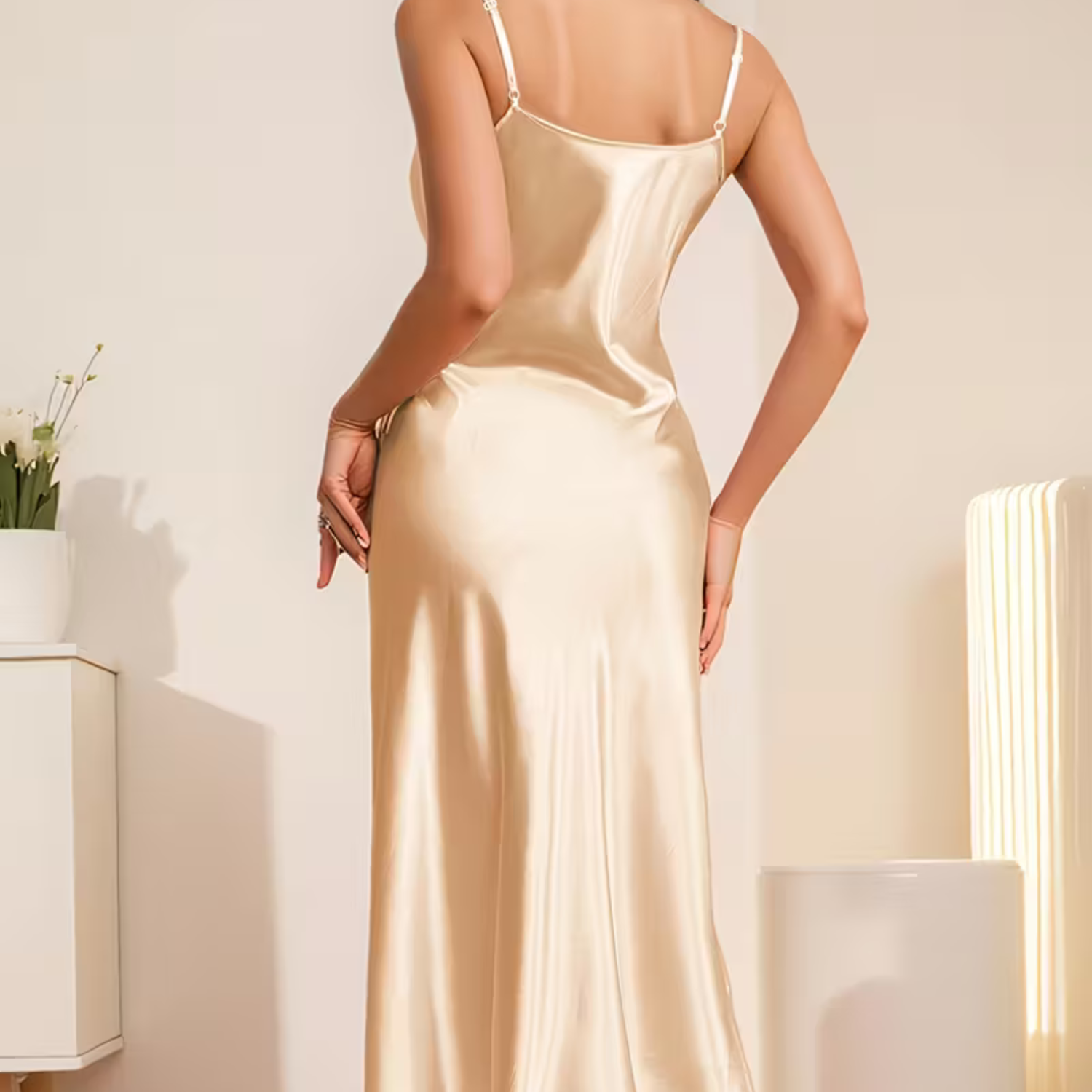 De zachte, zijdeachtige satijnstof glijdt licht over je huid, ademt met je mee en beweegt soepel bij elke stap. De verfijnde glans en subtiele kantdetails geven een luxe uitstraling, zonder in te leveren op comfort.